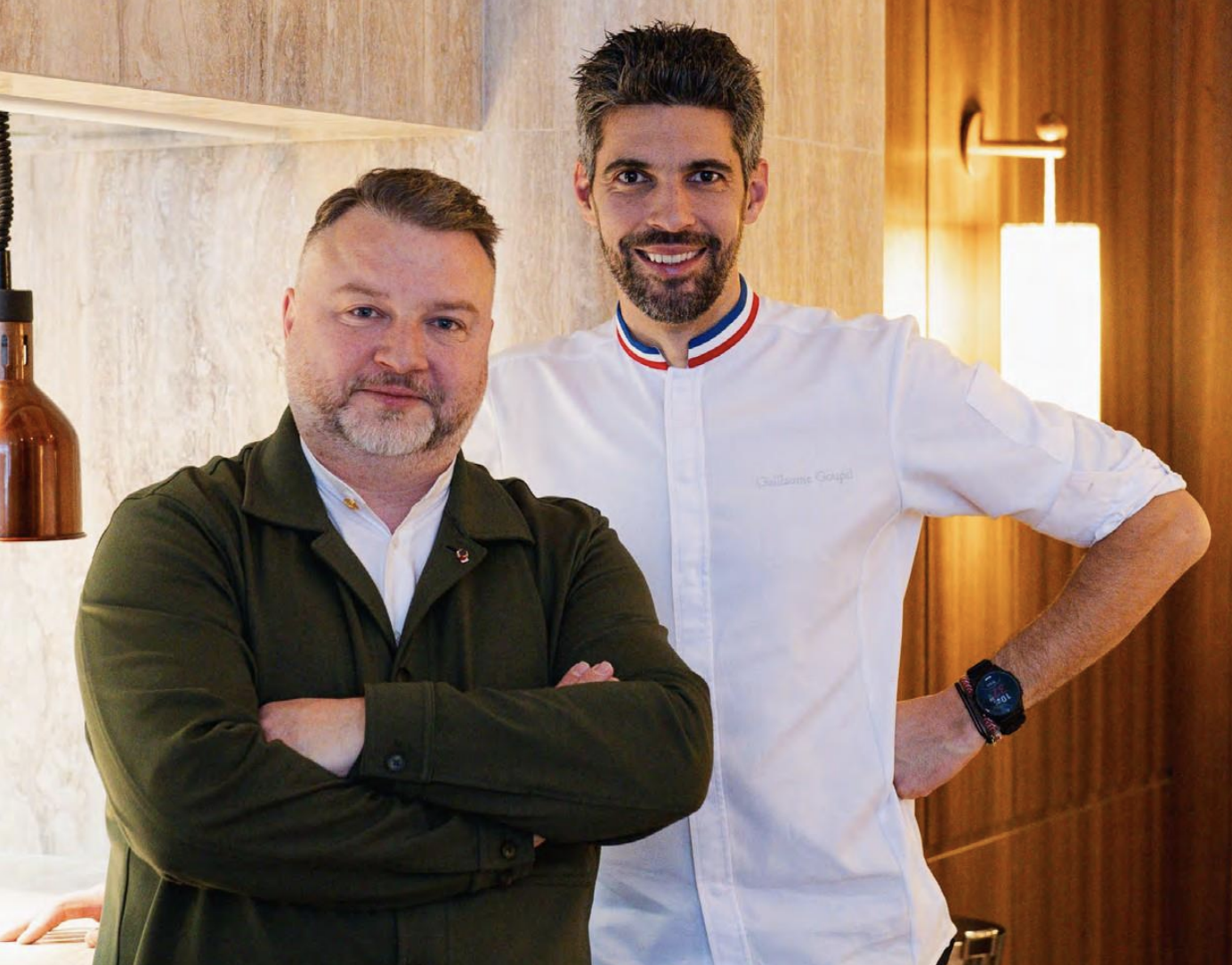 Le décor, signé par Arnaud Behzadi et Florence Bamberger, mêle courbes modernes, boiseries chaleureuses et fresques artistiques. À quelques pas, le restaurant bistronomique Fogo conserve quant à lui son identité, autour de la braise et des saveurs intenses. Guillaume Goupil a rejoint l’aventure de ces deux adresses parisiennes en octobre dernier.